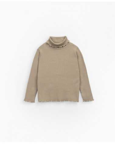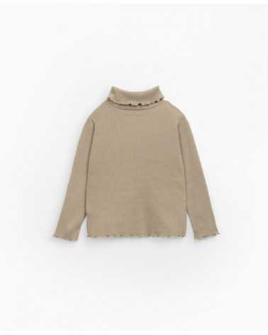 Camiseta Básica Rib en color Beige. Modelo de Camiseta Básica Rib Beige confeccionada en punto acanalado de Algodón Orgánico. Esta Camiseta Básica Rib es de cuello alto y manga larga.