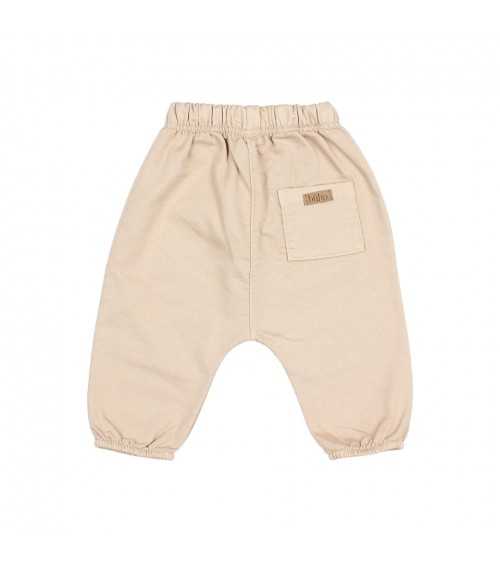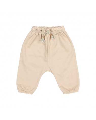 Pantalón Casual Bebé en color Beige. Modelo de Pantalón Casual Bebé de felpa con cintura elástica y cordón decorativo. El Pantalón Casual Bebé tiene puños elásticos.