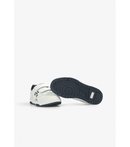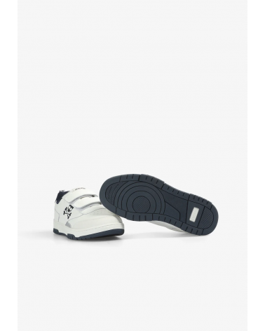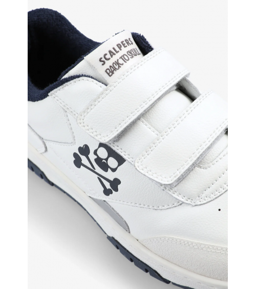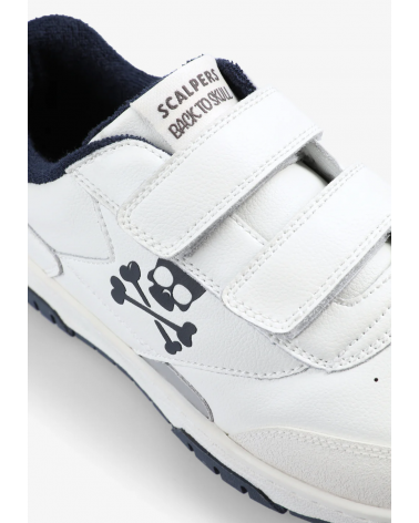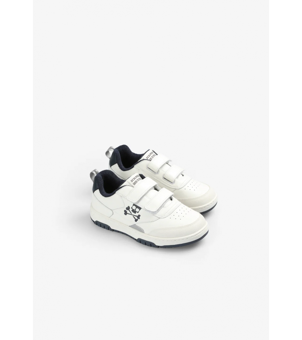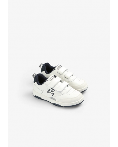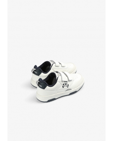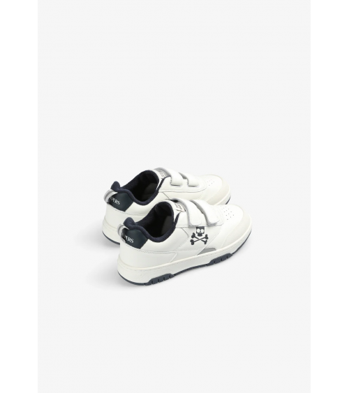 Sneakers en color Blanco. Modelo de Sneakers confeccionados en piel. Estos Sneakers cierran en Velcros y tiene suela de goma. Los Sneakers Velcro tiene Calavera lateral a contraste en color Marino.
