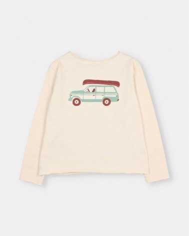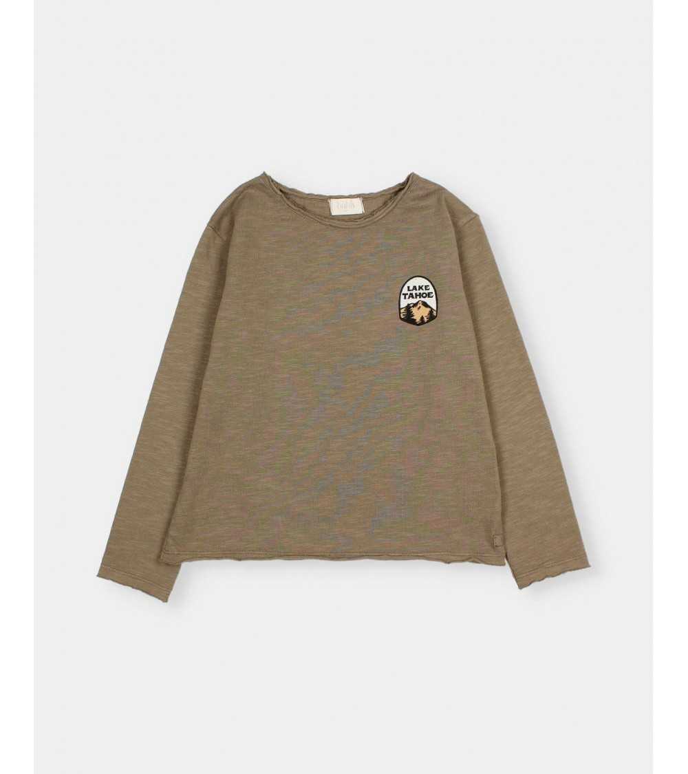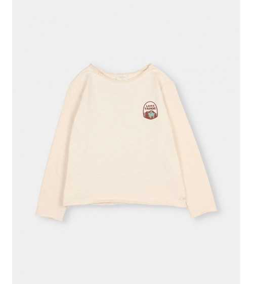 Camiseta Tahoe en color Natural. Modelo de Camiseta Tahoe de manga larga y cuello redondo. La Camiseta Tahoe tiene un dibujo estampado en espalda.