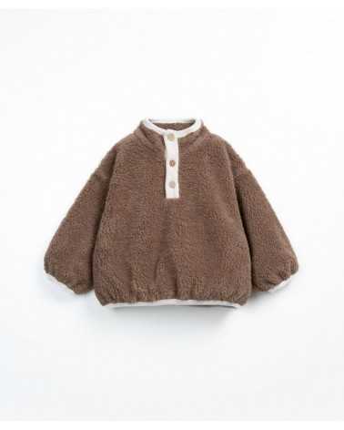 Sudadera Polar en color Topo. Modelo de Sudadera confeccionada en Algodón Orgánico. Esta Sudadera Polar Topo es de manga larga con elático en puós y bajo, tiene abertura frontal con botones de coco.