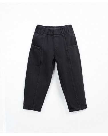 Pantalón en color Marino. Modelo de Pantalón Sarga confeccionado en Algodón. Este Pantalón Sarga es de cintura elásticfa y bolsillos laterales.