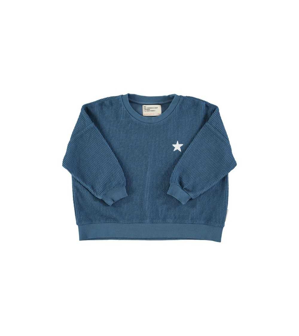 Sudadera Bebé en color Azul. Modelo de Sudadera Bebé Azul con Logo a contraste en espalda y estrella en parte delantera. Esta Sudadera Azul es de manga larga y cuello redondo, en las tallas de Bebé tiene botones en hombro para facilitar su puesta.