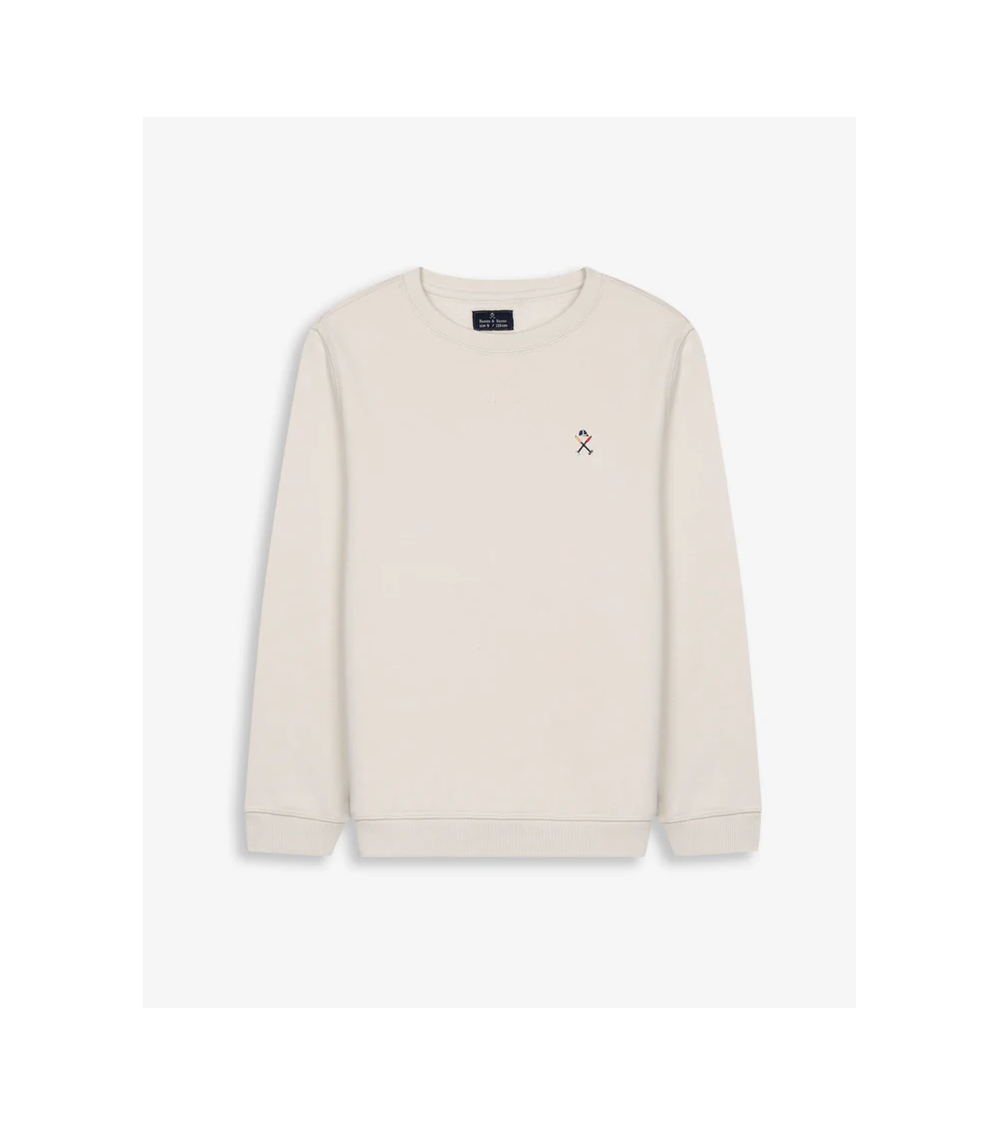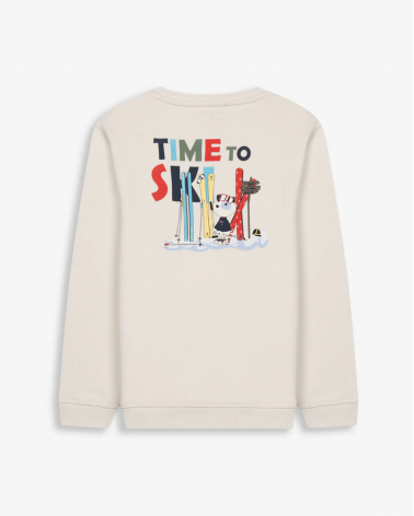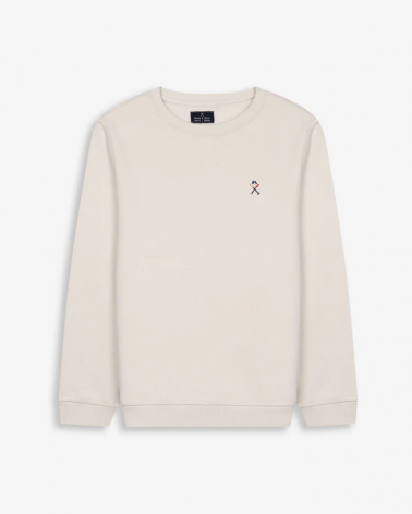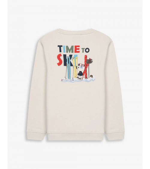 Sudadera en color Ecru. Modelo de Sudadera Snowdrift Ecru de manga larga y cuello redondo. Esta Sudadera Ecru Snowdrift tiene logo pequeño en pecho y estampación invernal en espalda.