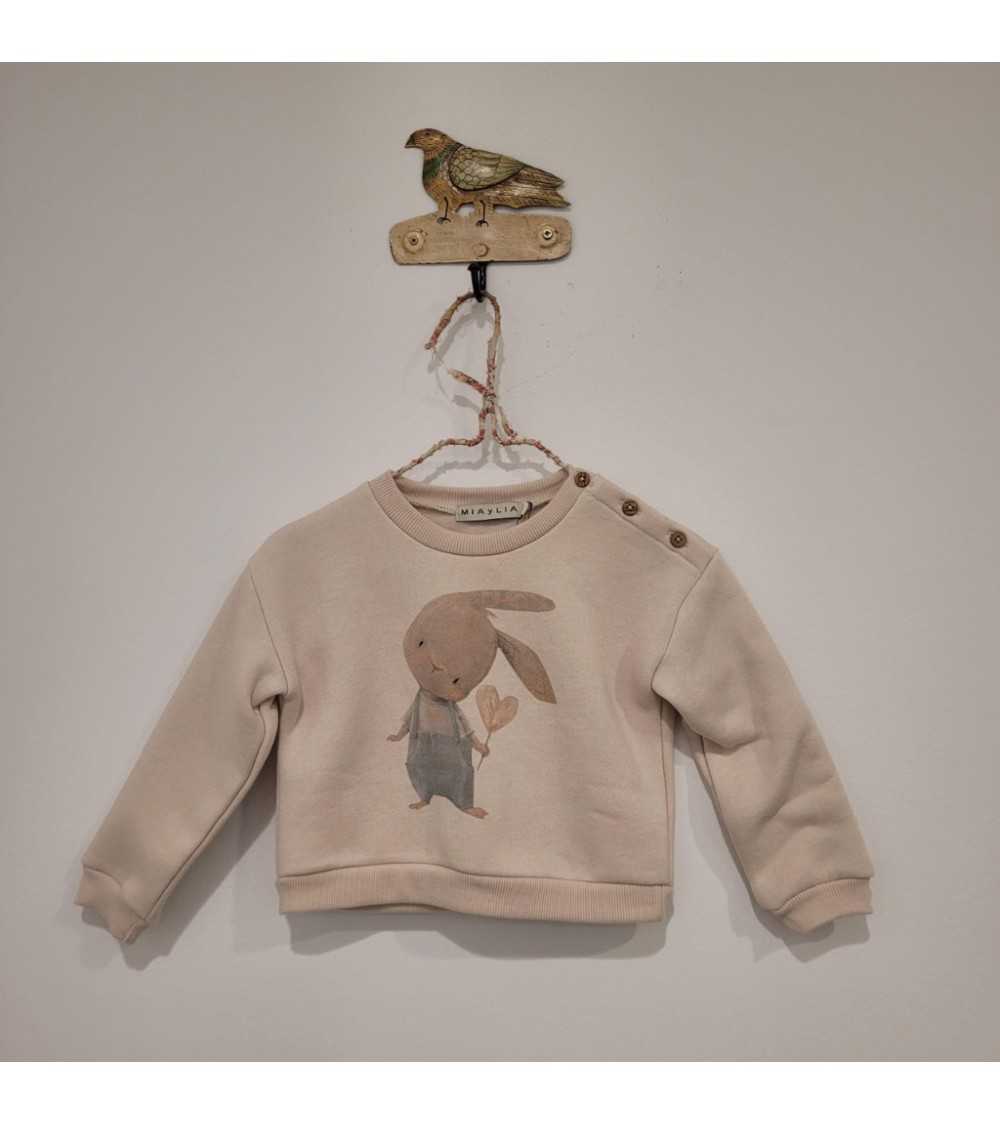 Sudadera en color Crudo con estampación de un Conejo con Corazón en la parte delantera. Modelo de Sudadera Conejo Oversize de manga larga y cuello redondo. La Sudadera Conejo Corazón tiene abertura en hombro en tallas pequeña para facilitar su puesta.