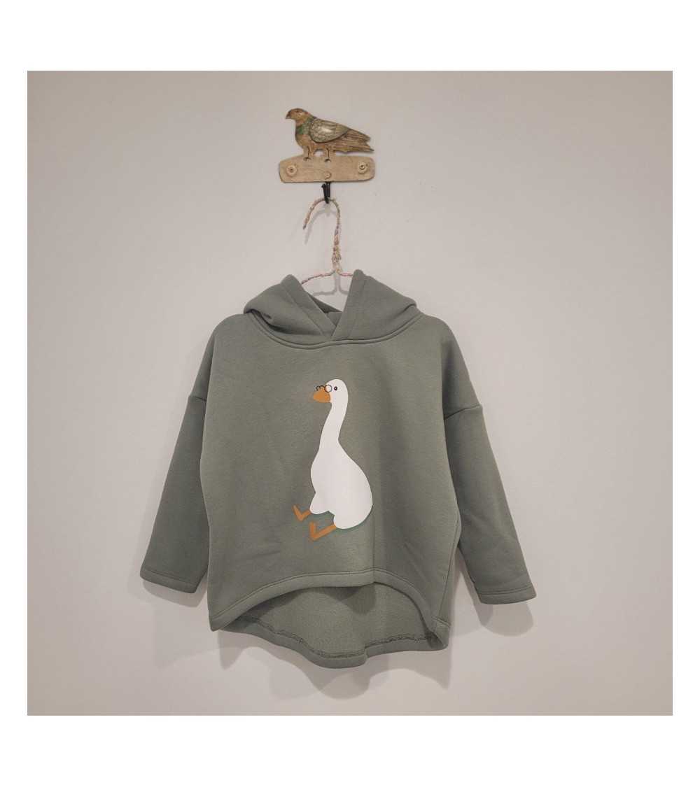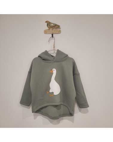 Sudadera en color Verde con estampación de Oca en la parte delantera. Modelo de Sudadera Verde Oca con Capucha y manga larga.