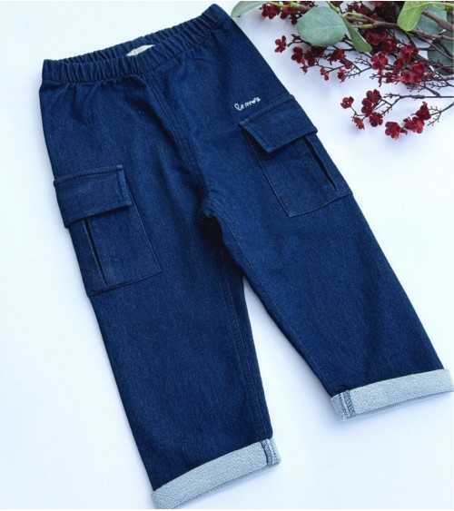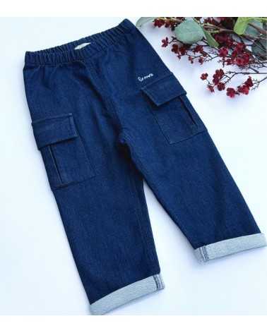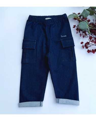 Pantalón de Bebé en tejido Denim. Modelo de Pantalón Bebé Denim con cintura elástica y bolsillos laterales. Est Pantalón Bebé Denim Cargo tiene un tejido blando para dar mayor libertad de movimiento a los pequeños.