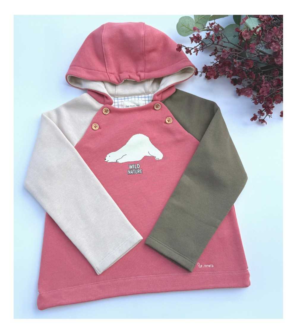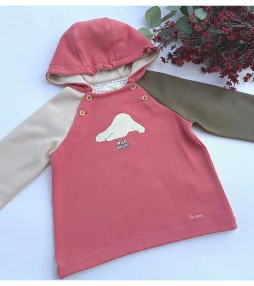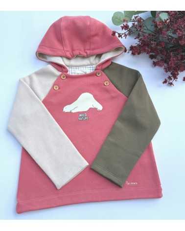 Sudadera Bebé en colores tierra con estampación de Oso en pechera. La Sudadera Bebé Oso es un modelo con capucha y abertura en hombros con cierre con botones de madera que facilita su puesta. Esta Sudadera Bebé Oso es un modelo que sienta lujo y le da un toque informal al look.