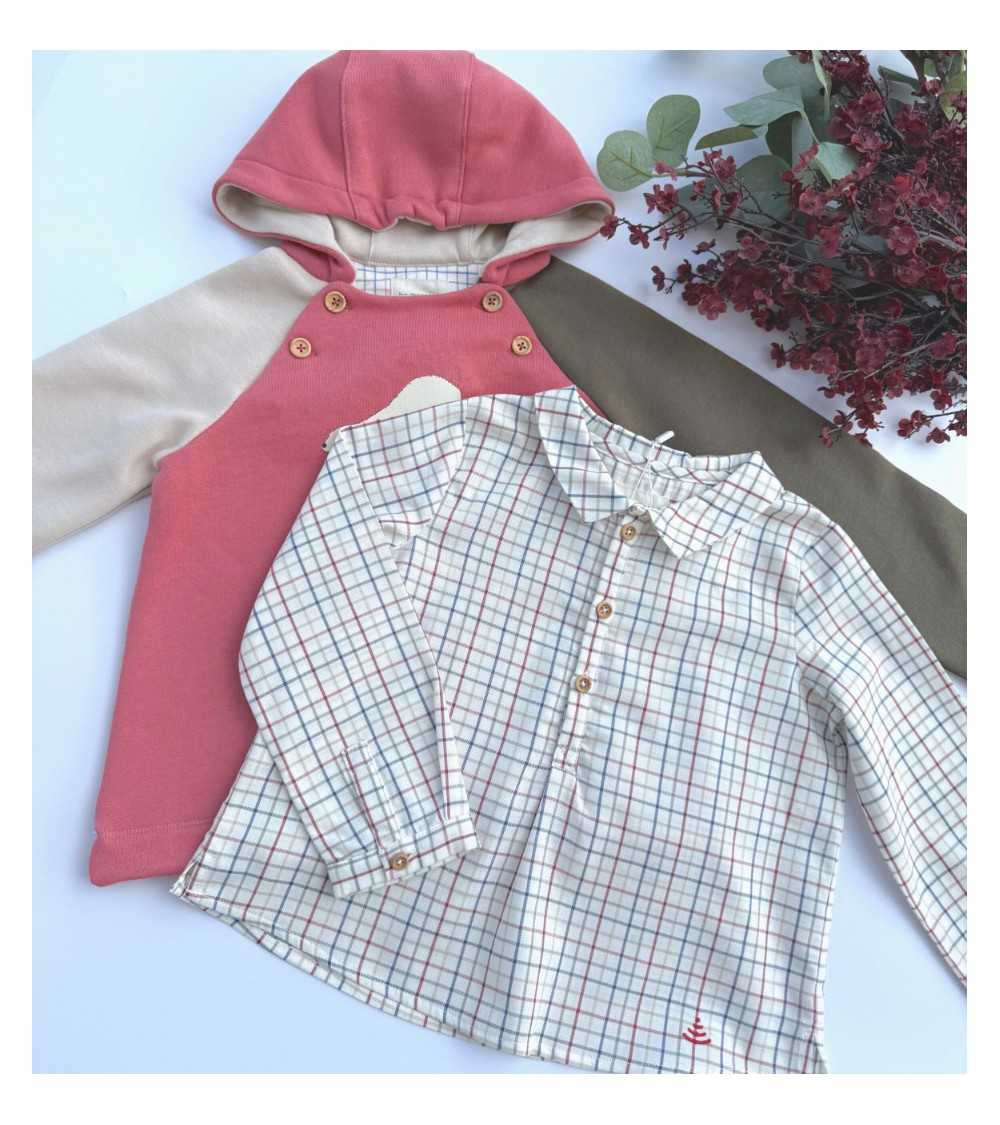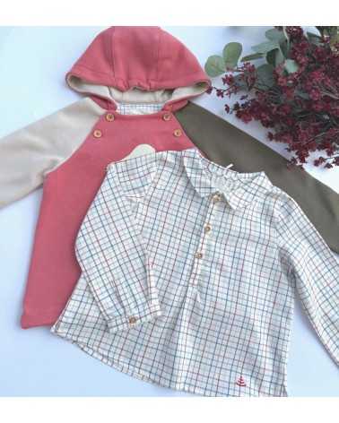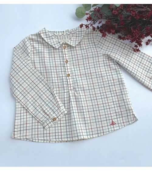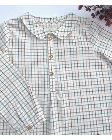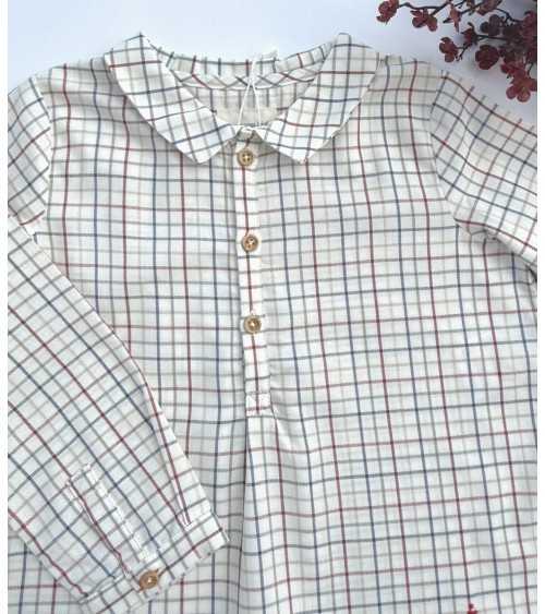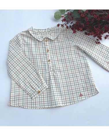 Camisa Bebé de Cuadros. Modelo de Camisa Bebé Cuadros con cuello Bebé y manga larga con abertura delantera a pecho y botones de madera. Esta Camisa Bebé Cuadros tiene clásica pinza delantera para que siente como un guante a nuestros peques.