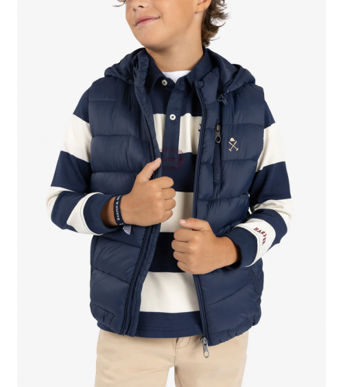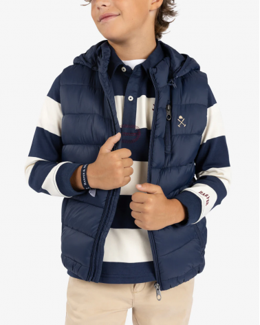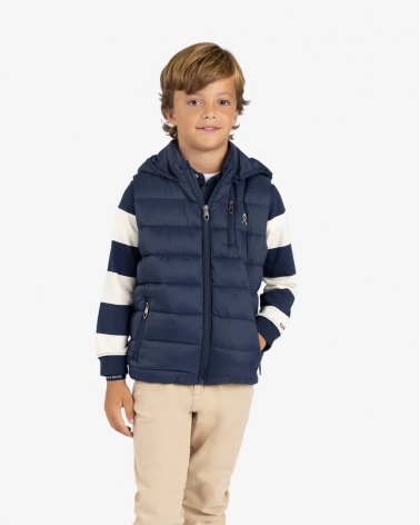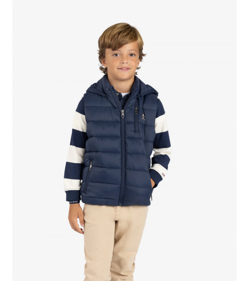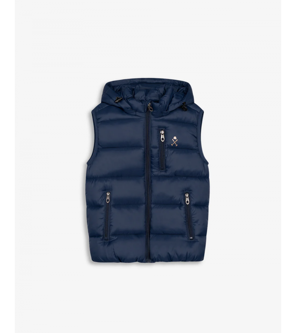Chaleco Galway en color Marino. Modelo de Chaleco Galway ligero y acolchado, perfecto para entretiempo. Este Chaleco Galway cierra con cremallera y tiene capucha extraíble.