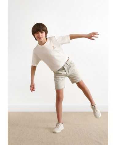 Bermuda de Algodón en color Beige. Modelo de Bermuda Algodón Beige de cierre con botón y cremallera y trabillas en la cintura. Esta Bermuda Algodón tiene bolsillos laterales y traseros. La Bermuda Algodón Beige tiene elástico interior en cintura para mejor ajuste y es de corte regular fit.