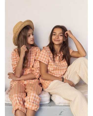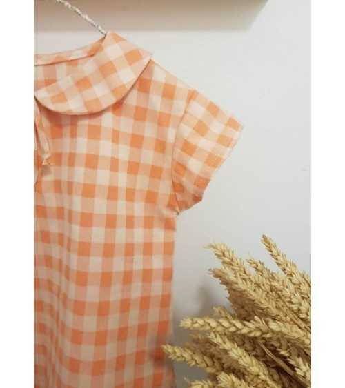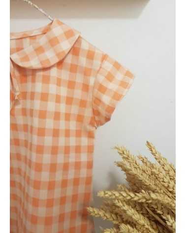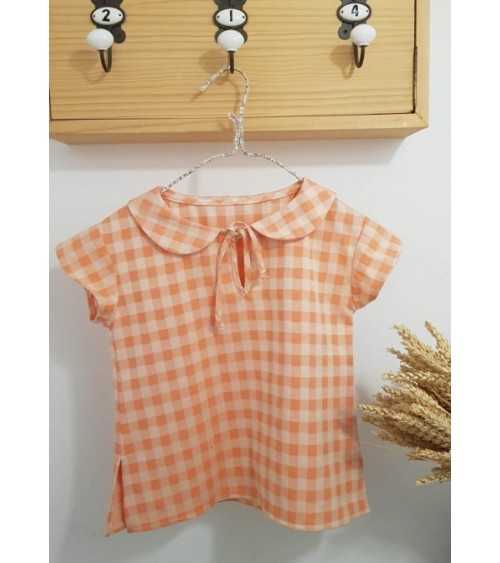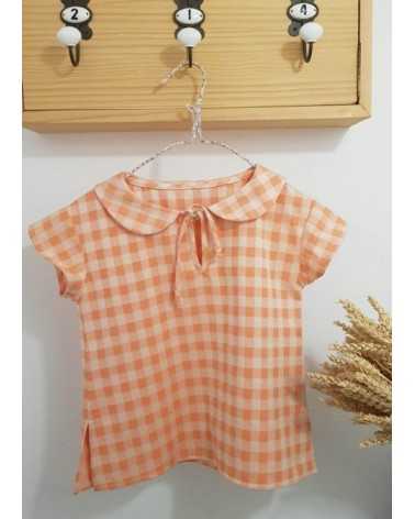 Blusa de Cuadros en color Naranja. Este modelo de Blusa Naranja tiene cuello bebé y es demanga corta.