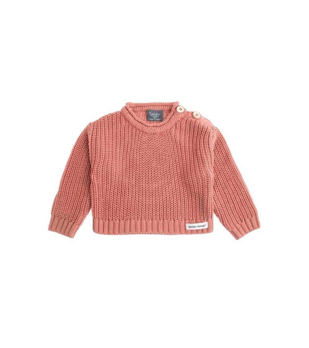 Jersey de Punto en color Rosa. Modelo de Jersey Rosa con abertura en hombro con dos botones.