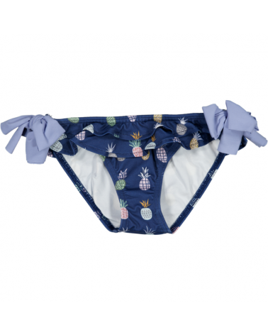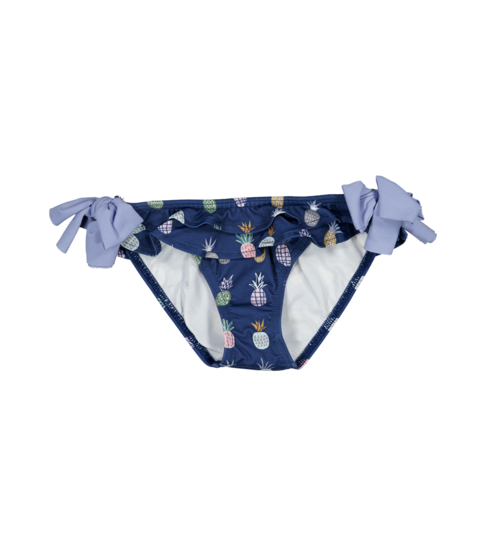 Culetín en color Azul Marino con estampado de Piñas. Modelo de Culetín Piñas con detalle de nudo en laterales en color Azul Cielo.