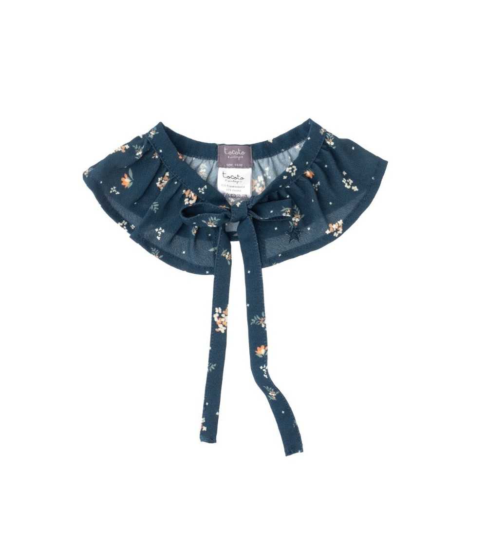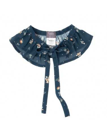 Cuello de Estampado de Flores en Color Azul Petróleo. Modelo de Cuello Flores fluído con volantes.
