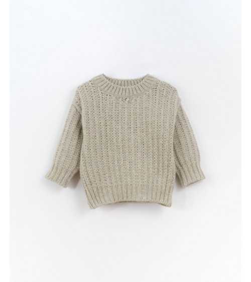 Jersey de Punto en Color Beige. Modelo de Jersey Punto Beige de cuello redondo y manga larga; este Jersey Beige tiene puños, bajo y cuello acalanado.