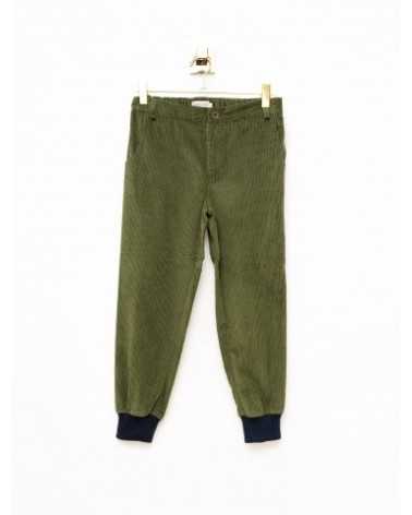 Pantalón Jogging en Color Verde. Modelo de Pantalón Jogging Verde en tejido de Pana. El Pantalón Jogging Pana Verde tiene cintura ajustable interior y puño en elástico Color Azul Marino.