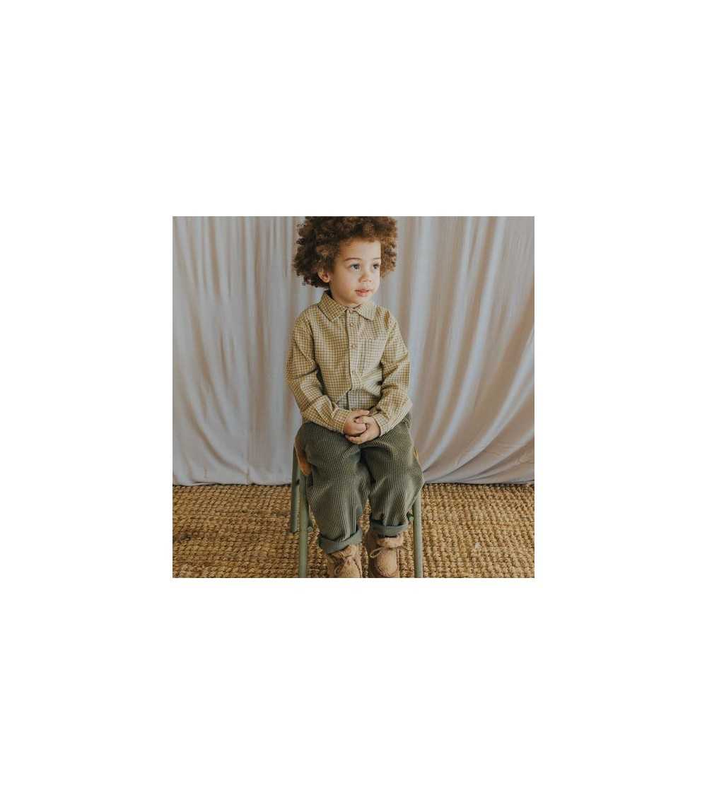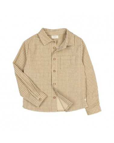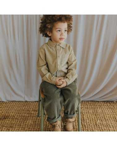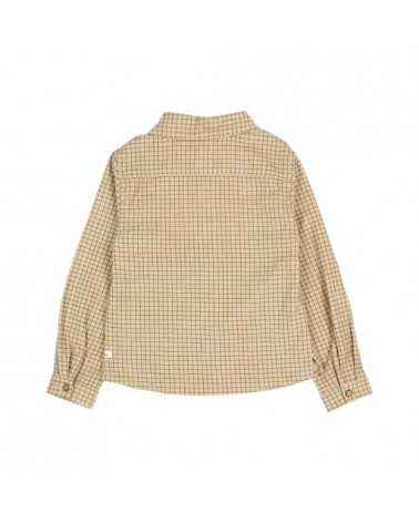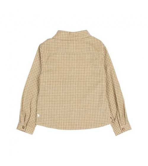 Camisa de Cuadros en color Beige. Modelo de Camisa con cuello peter pan y botones delanteros. Esta Camisa Cuadros tiene bolsillo en el pecho. La Camisa Cuadros Beige está confeccionada en pana aterciopelada.