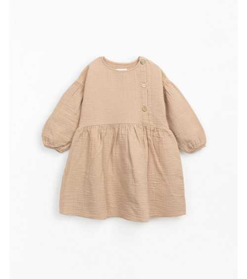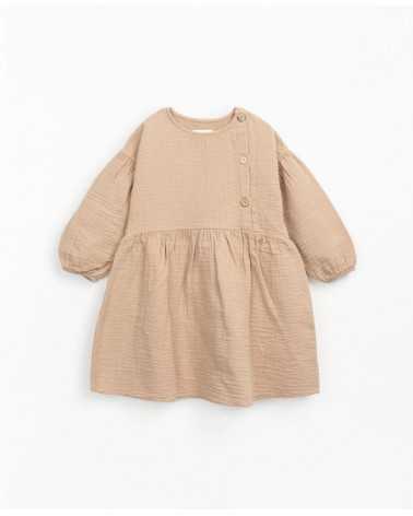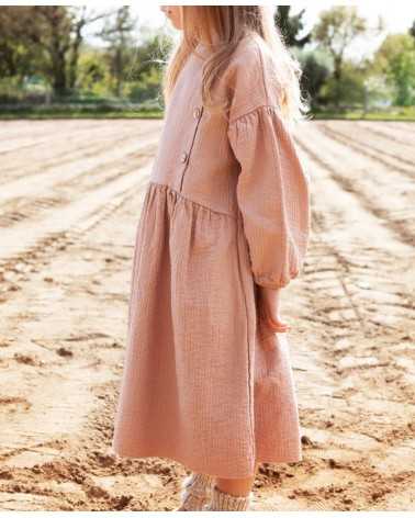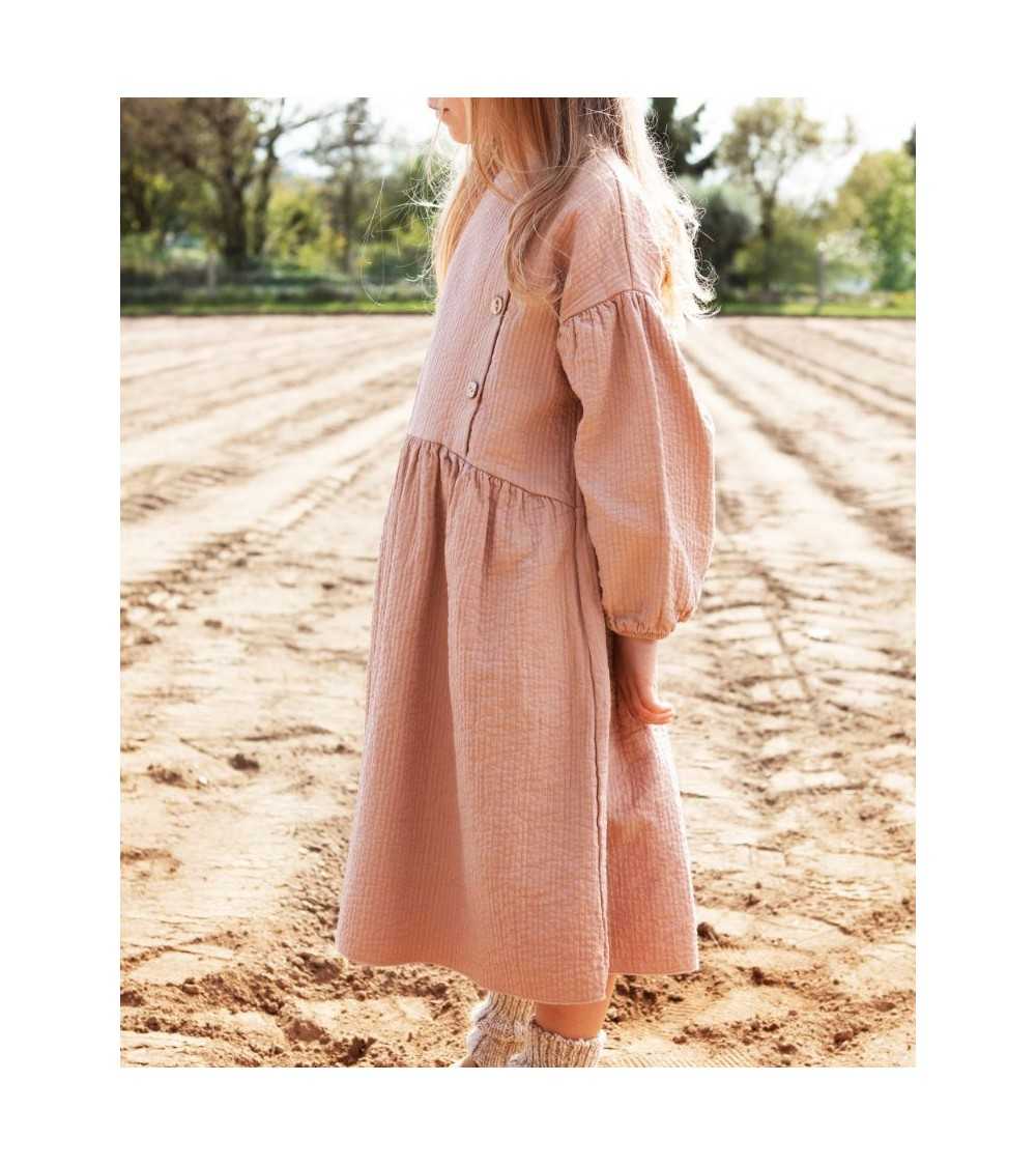 Vestido Oversize en color Rosa Palo. El Vestido Oversize está confeccionado en tela de algodón orgánico. Modelo de Vestido Rosa Palo con cuello redondo y manga larga. Este Vestido Oversize Rosa Palo tiene abertura lateral en el pecho que cierra con botones de coco.