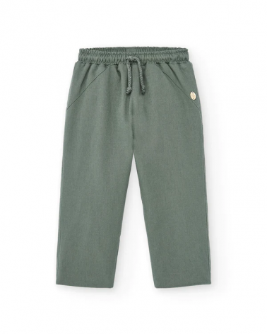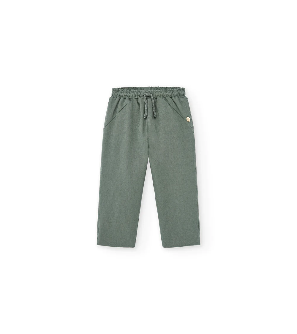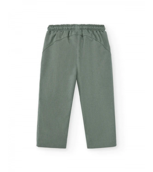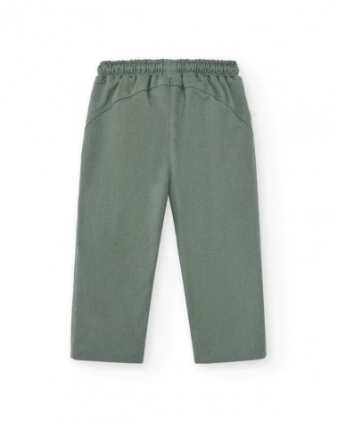 Pantalón Bebé en color Verde. Modelo de Pantalón Bebé Verde con Goma en cintura y cordón ajustable. Este Pantalón Bebé Verde Goma es largo sin bolsillos.