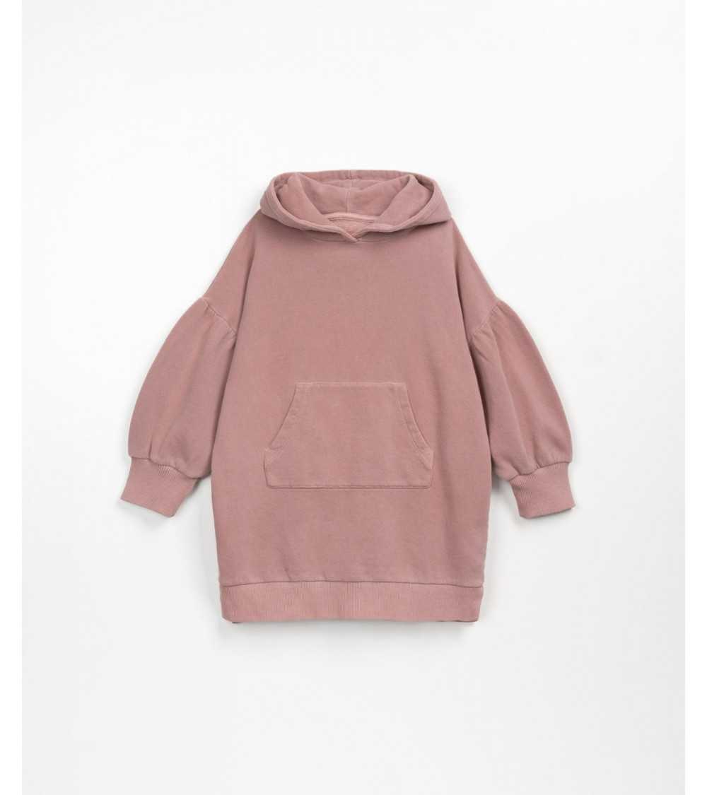 Vestido en color Rosa Viejo. Modelo de Vestido elaborado en mezcla de Algodón Orgánico y Algodón. Este Vestido Algodón Orgánico es de manga larga con capucha y bolsillo canguro. El Vestido Capucha Algodón Orgánico tiene goma en bajo y puños.