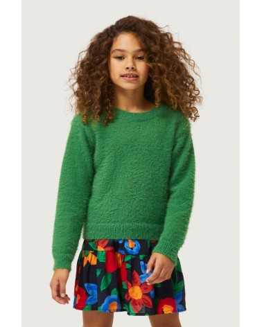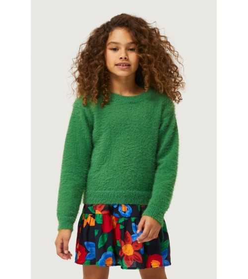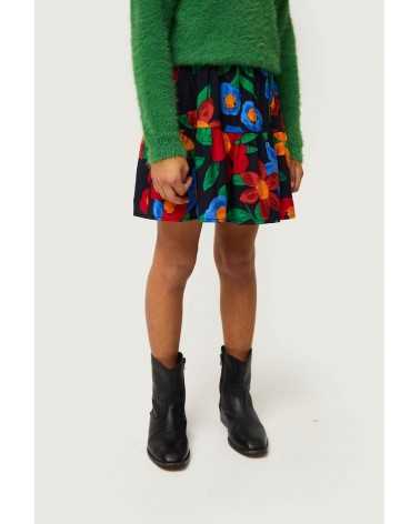 Falda Corta de niña en crepé de viscosa con Estampado de Floral multicolor. Con cintura elástica. Detalle de corte horizontal. Forro interior.
