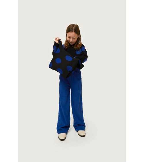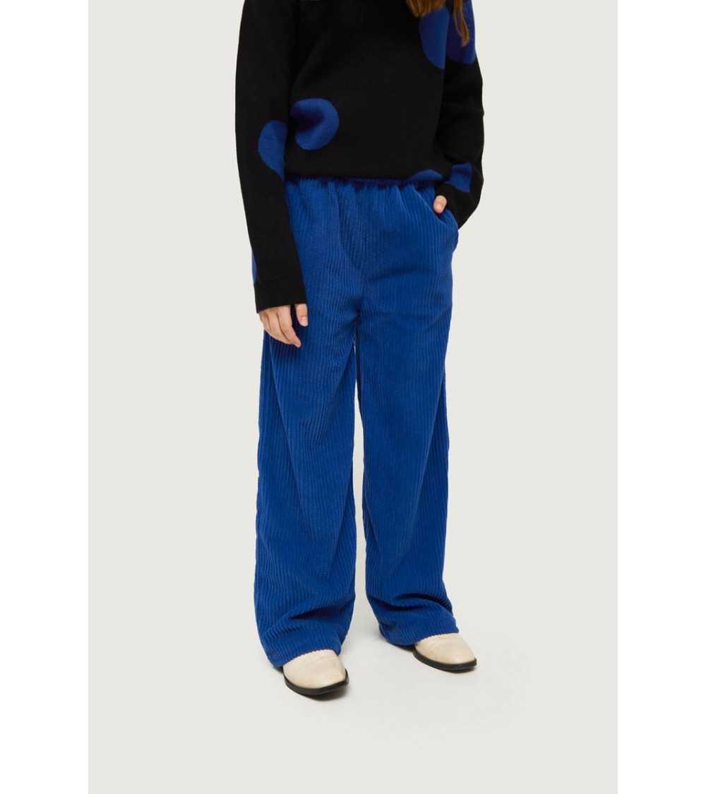 Pantalón largo de niña de Pana en color Azul . Con cintura elástica y pernera recta. Bolsillos laterales. Este pantalón de Pana Azul es de Compañía Fantástica.