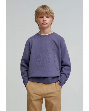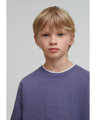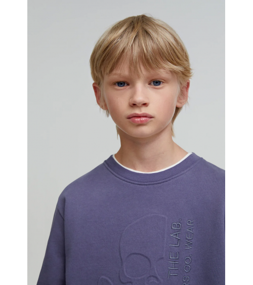 Sudadera en color Azul efecto gastado. Modelo de Sudadera Azul Embossed con Calavera en relieve en la parte delantera. La Sudadera Azul Embossed es de cuello redondo y manga larga con corte regular fit.