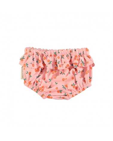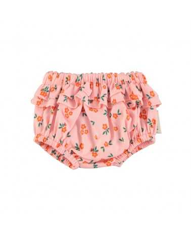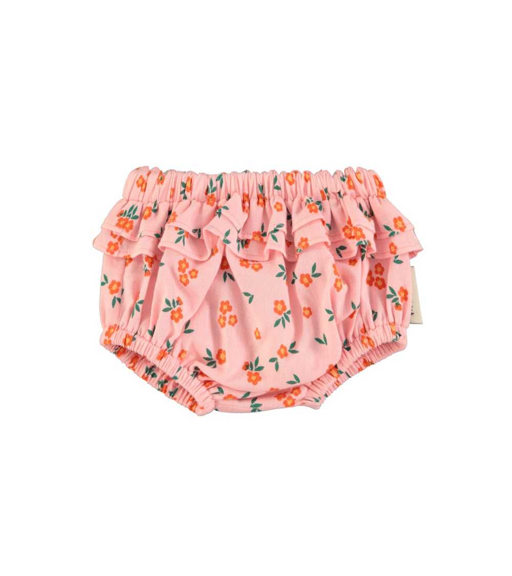 Ranita en color Rosa con estampado de Flores. Modelo de Ranita Flores Rosa con cintura elástica. Esta Ranita Rosa Flores tiene detalle de doble volante y está confeccionada en tejifo 100% algodón.