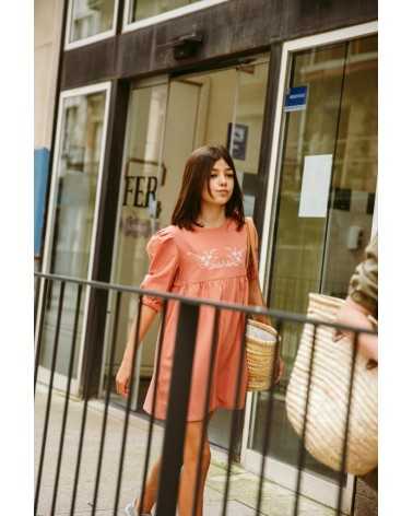 Mono en color Nude. Modelo de Mono Nude con Bordado en zona de pecho en color crudo. El Mono Bordado Nude es de manga y pierna corto.